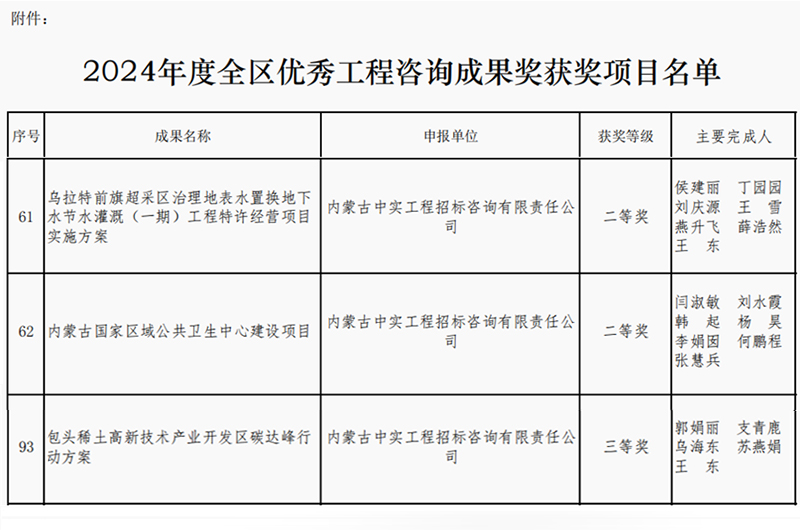 2025-04-169712 次2025年4月16日,内蒙古工程咨询协会公布了2024年度优秀咨询成果奖获奖单位名单,我司取得两个二等奖和一个三等奖,我司专业能力和服务质量再次获得行业的认可。此次获奖,不仅体…